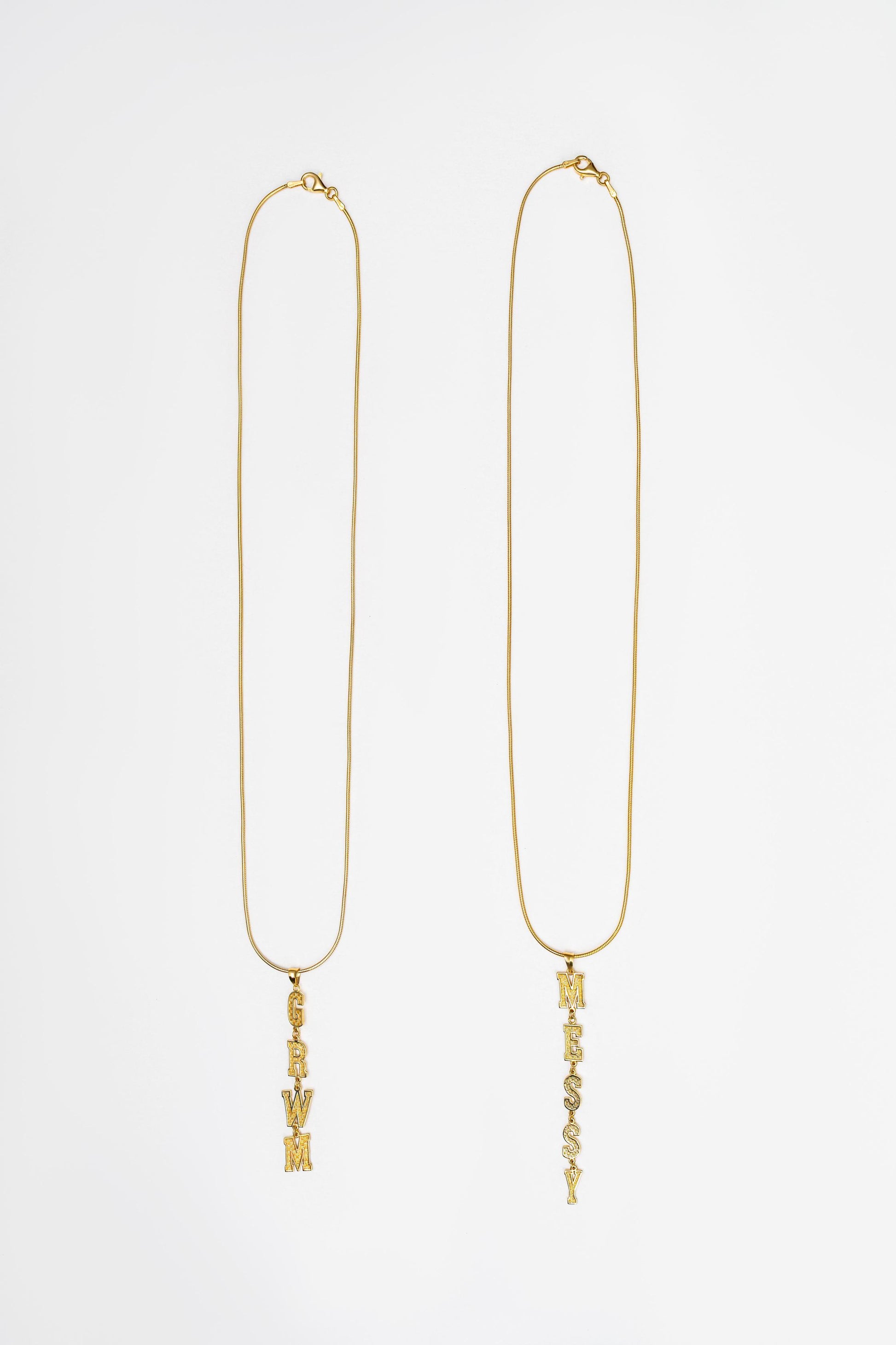 This piece hangs vertically, letting your name, word, or mantra drop with intention. Whether you keep it short and chic or spell it all out, the Mini NameDrop makes it personal, playful, and unmistakably yours.